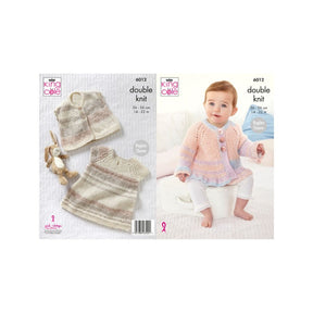 King Cole pattern 6012 is for a babies cardigan, dress and gilet to fit sizes 36 - 56 cm / 14 - 22 in.